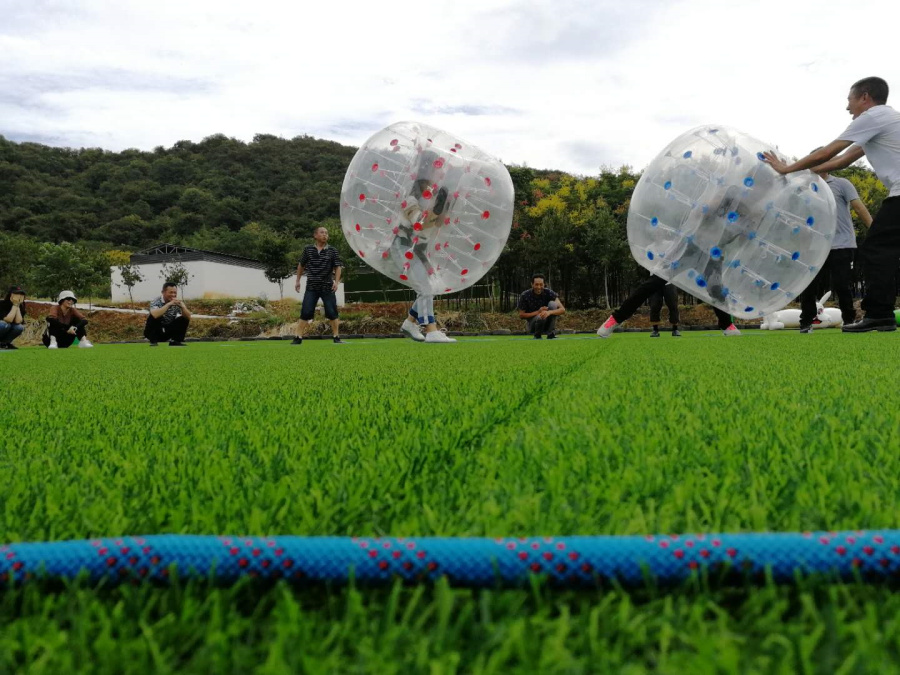最后一个很受大家期待的项目《碰碰球》闪亮登场了,教练讲好安全事项和比赛规则,用跳绳在地上划了一个圈,每个小组派一名队员穿上球球服,进入战斗圈里开始奋斗吧。只要将对手撞倒或者出圈就是胜利,两两互搏,看看那个小组是胜利多的队伍吧,不是体力才是王道,技术和战术也是胜利的重要条件哦。当然开心最重要。