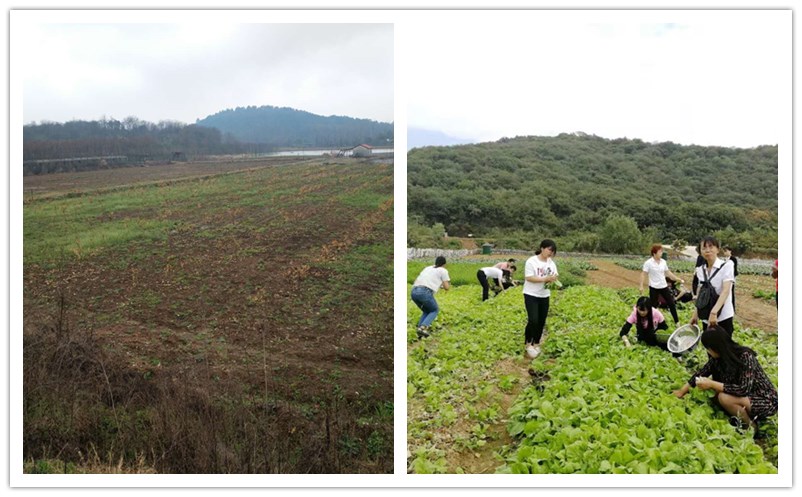 来乐农的游客很大一部分都是公司团队出游的,那么员工拓展活动或者一些有意思的团体趣味运动会就是必不可少的了。那么有没有这么一个场地可以让大家好好的玩一下或者做一些有利于团队建设的活动项目的呢?那是当然。看看这个图,它是有“容量”的,但是前身也是荒芜的,这就是它的变化。