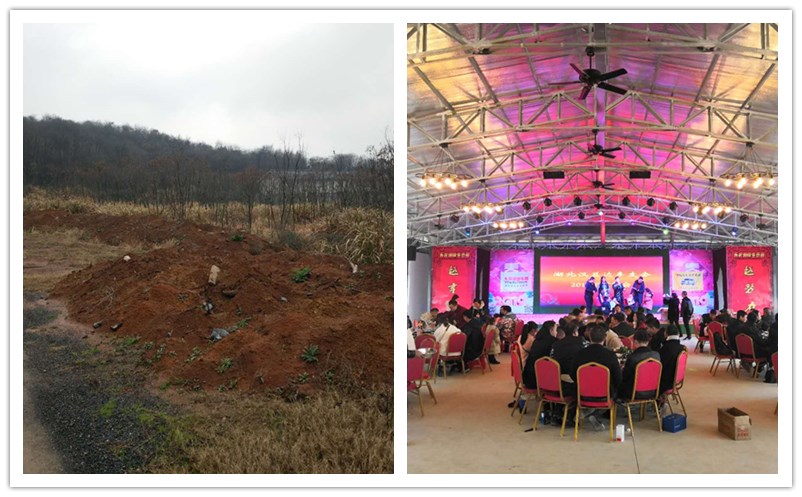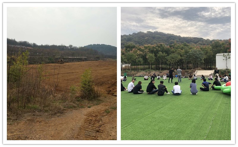 到了年尾了,各武汉企业年会场地也成了很多人开始寻找的方向。那么咱么这个武汉度假村的乐农有没有这个实力呢?来看看这张图吧。左边是什么?对,就是一块荒地,不过我们已经提前备了地基土了。右边就是一年后它的样子,已经有团队在这里享受年会的热闹氛围了。在此之前,很多的团队出游的游戏也是在这里开展的,这里承载了很多的欢声笑语和有纪念意义的瞬间。